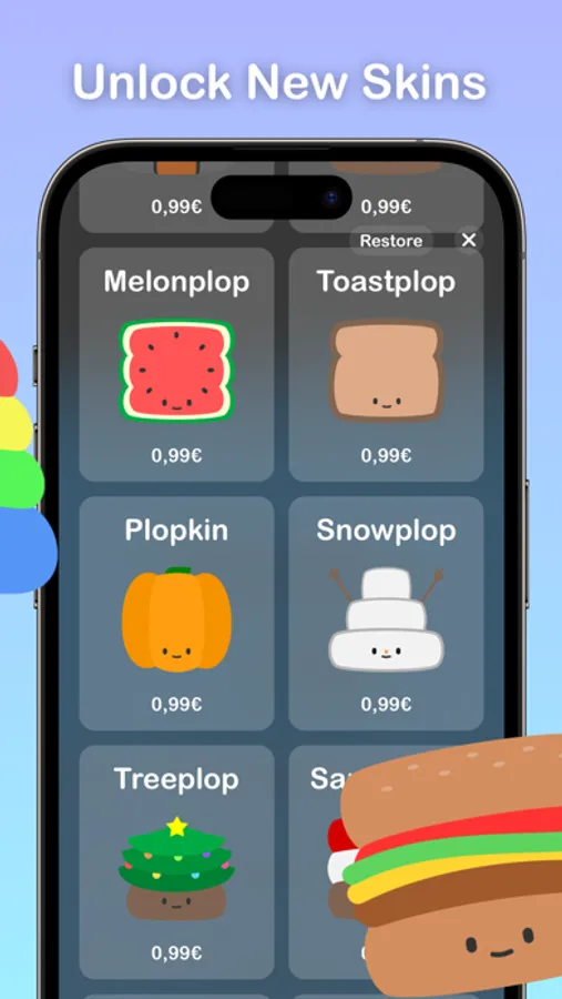It’s as easy as it sounds - just pop the Ploppies before they reach the water to become the best Ploppypopper in the world. Different types of Ploppies will make it either harder or easier for you to get a better score. Unlock various achievements and skins on your way to the top and challenge your friends to beat you.