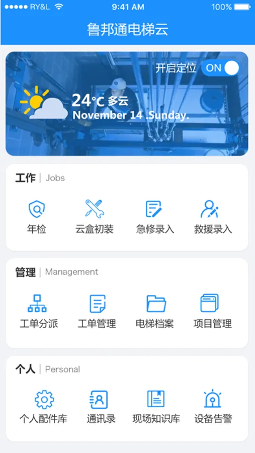 REMS维保工程师app:将工单处理,配件申领等维保流程无纸化,线上化,实时查看电梯状态及统计数据,帮助工程师进行维修及工单处理。