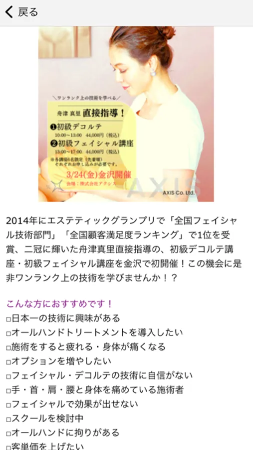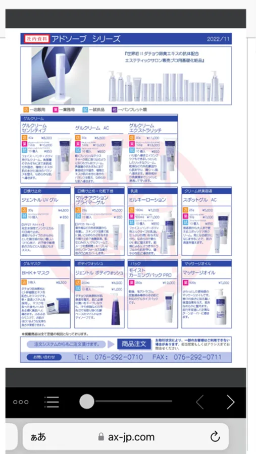 エステサロン、美容室、スポーツジム向け商材の注文をはじめ、セミナー情報、商品状況のお知らせを配信しています。