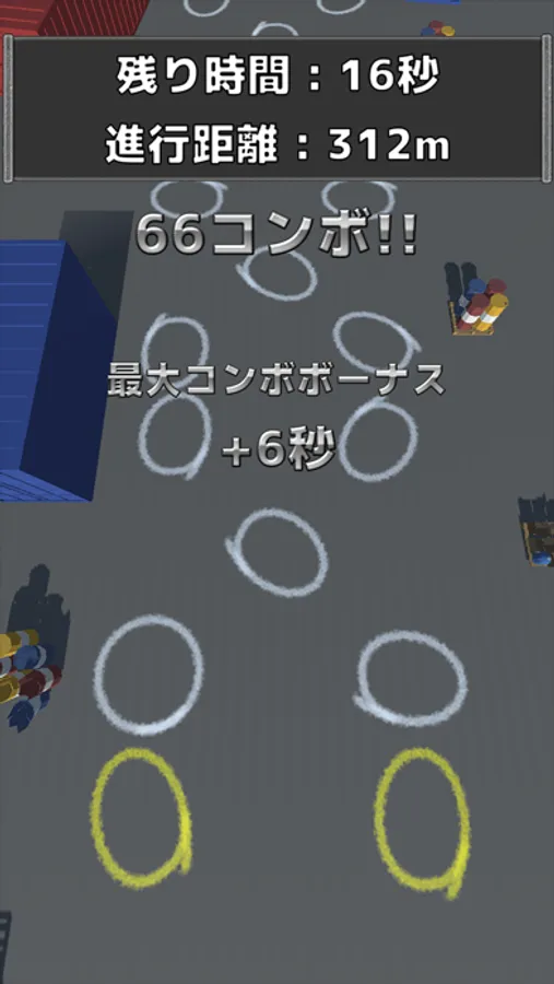 迫りくる制限時間の中でリズム良くタップして、制限時間内で何m進めるかチャレンジだ!
