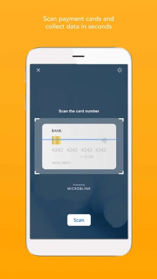 - Use your phone camera to scan payment cards and collect card information in a matter of seconds