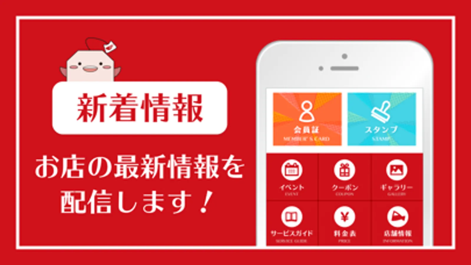 お知らせ情報をいち早くお届けするほか、お得なクーポン、スタンプカードもご用意しています。