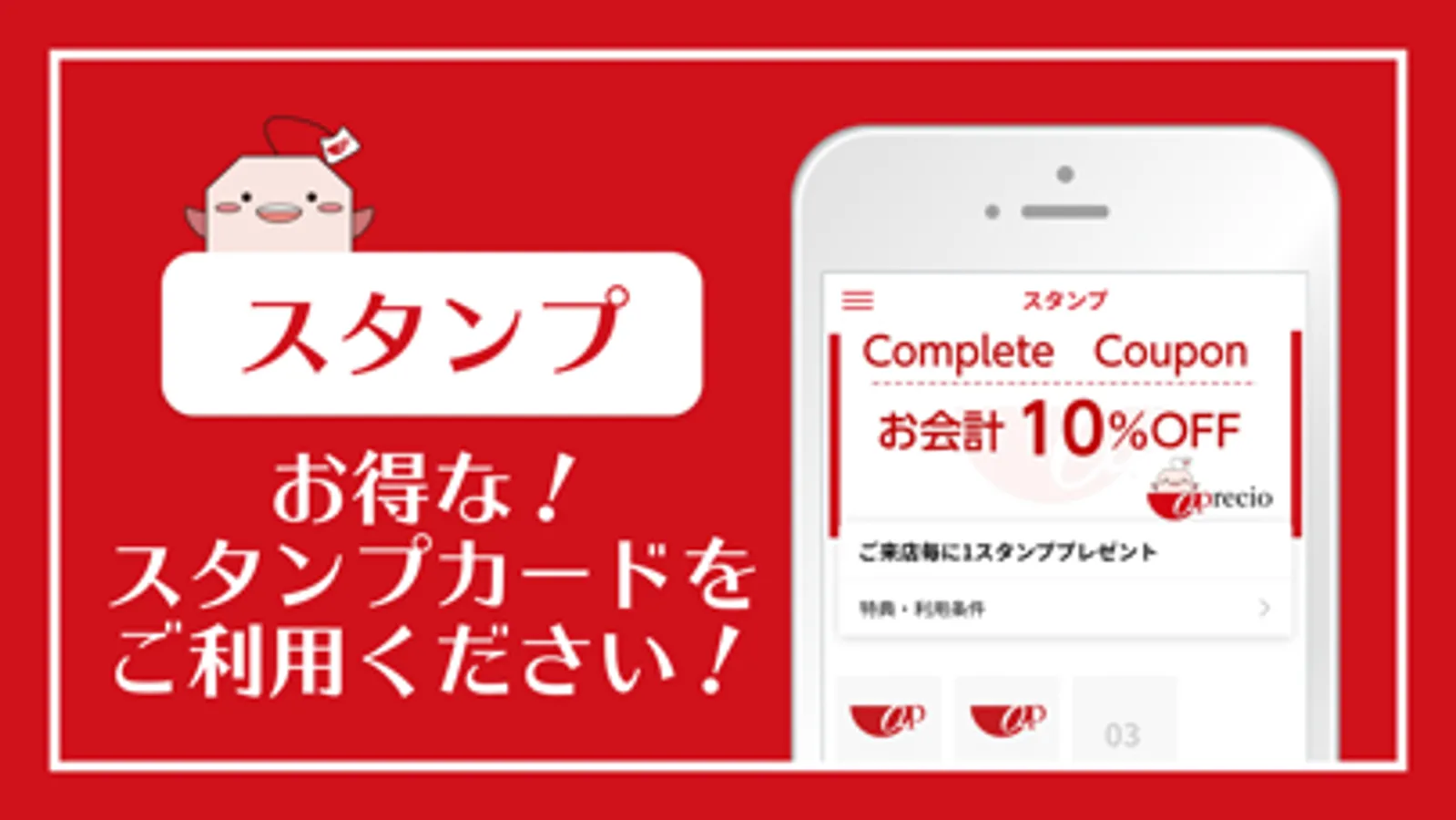 来店スタンプを貯めるとお得なクーポンがもらえます!