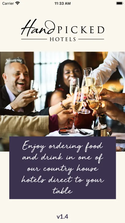 Welcome to the Hand Picked Hotels App. Allowing you to order food and drinks when staying in one of our country house hotels, with contactless payments within your chosen destination, either at the bar or within one of our restaurants.