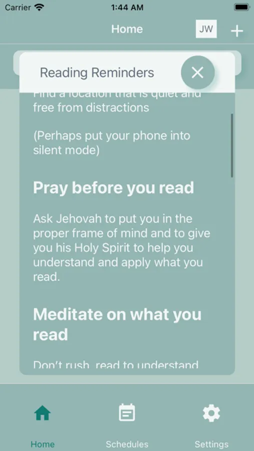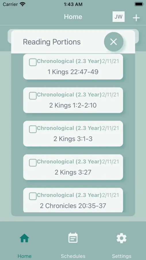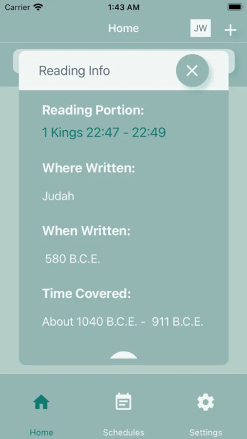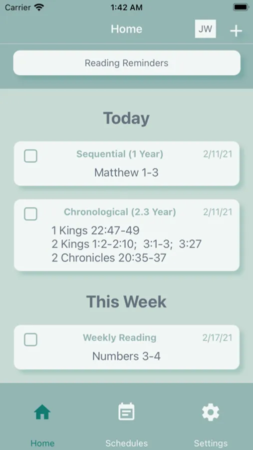 - All schedules appear on the home screen displaying which portions need to be read for the day.