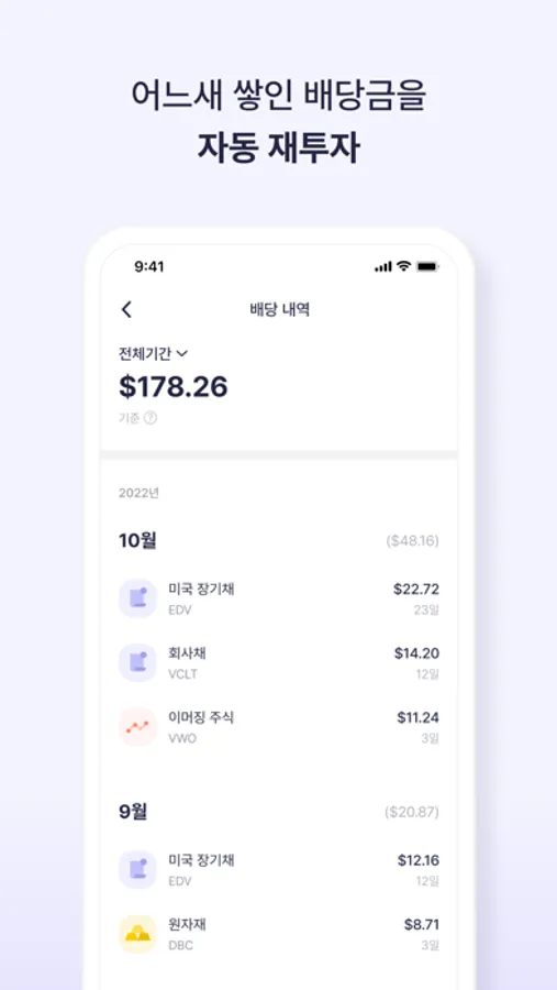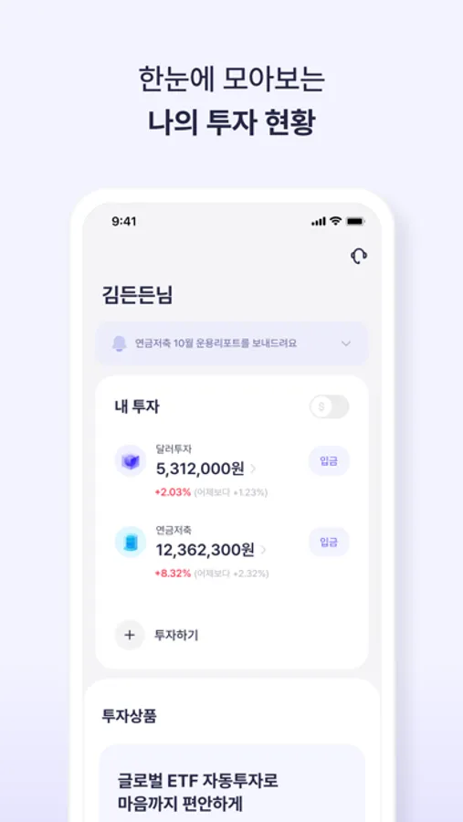 원화는 물론 주식∙채권∙원자재 ETF, 달러 등 글로벌 자산군에 간편하게 자산배분 자동투자!