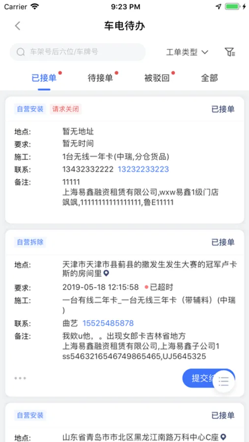 1、工单流转:工单分派、服务接单、提交处理结果、修改信息、进度查看