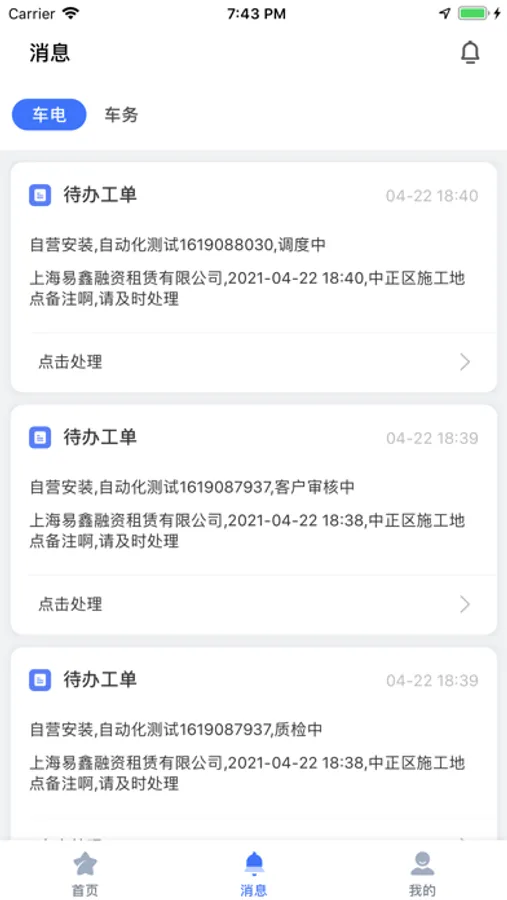 2、消息:支持消息中心查看历史消息,关键节点推送流程消息