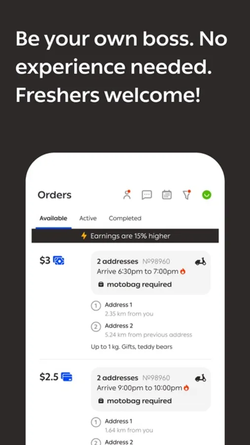Registration only takes 10 minutes, and you will see available orders near you right away.