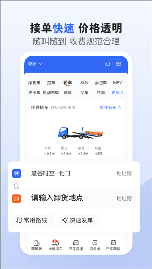 车拖车是一款专业的轿车托运平台,解决广大需求方和司机朋友信息不对称的问题。
