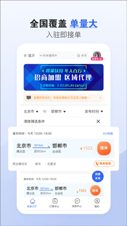 广大拖车司机可以通过车拖车平台迅速对接到客户需求,大大提高拖车运作效率,进而获得更为丰厚的收入。