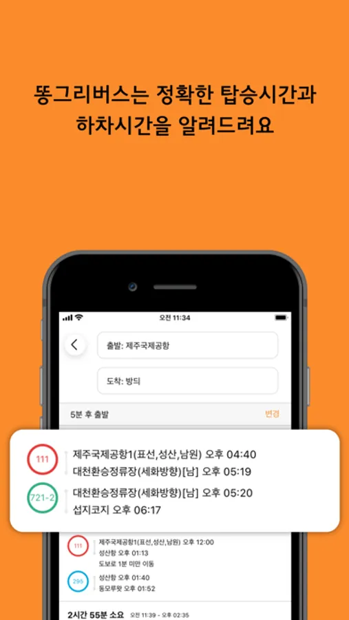똥그리버스는 실제 운영중인 버스 시간표를 반영해 경로를 검색하므로 실제 탑승이 가능한 경로만 검색결과로 노출해요.