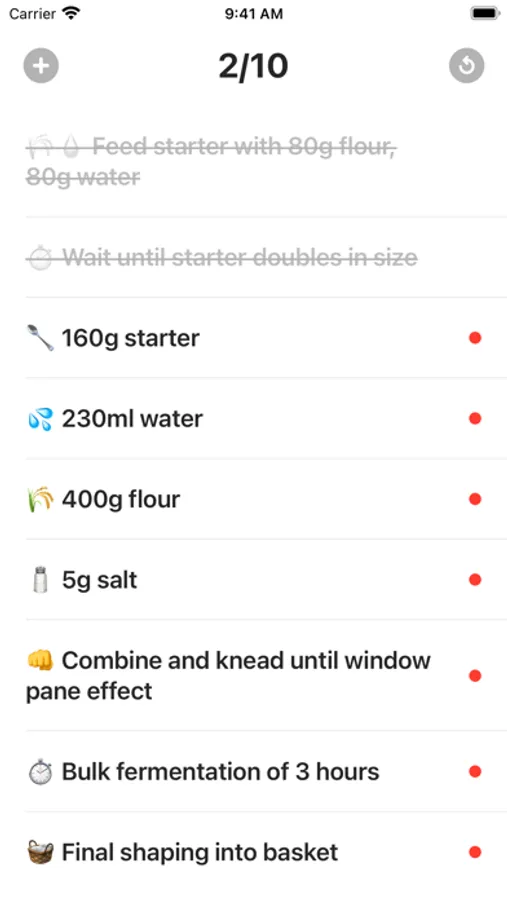 - Weekly sourdough recipe steps