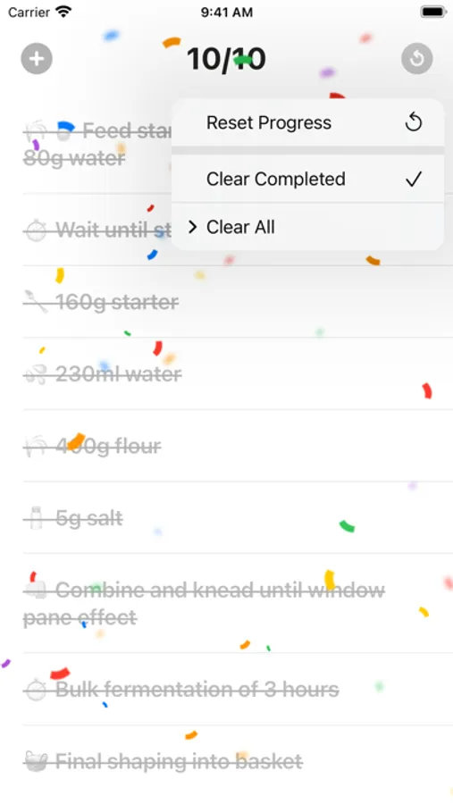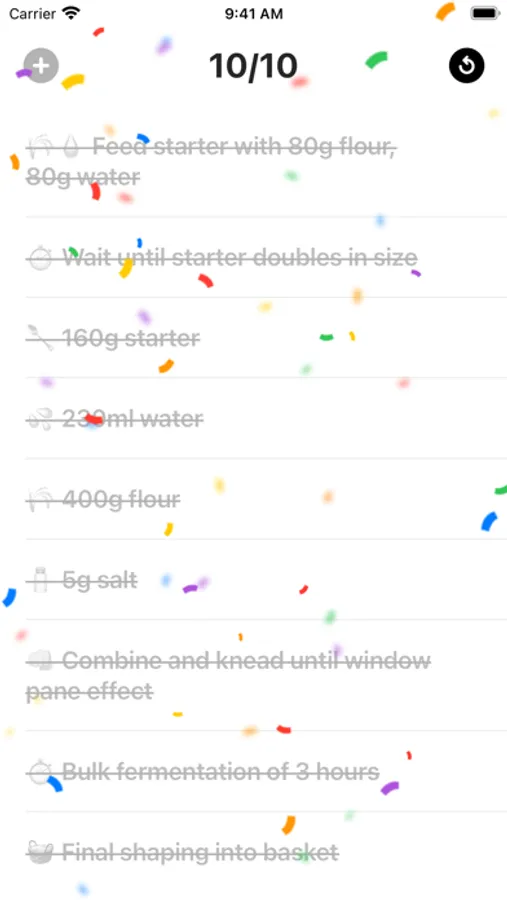 A minimal to do list that can be reset so you can repeat certain tasks.