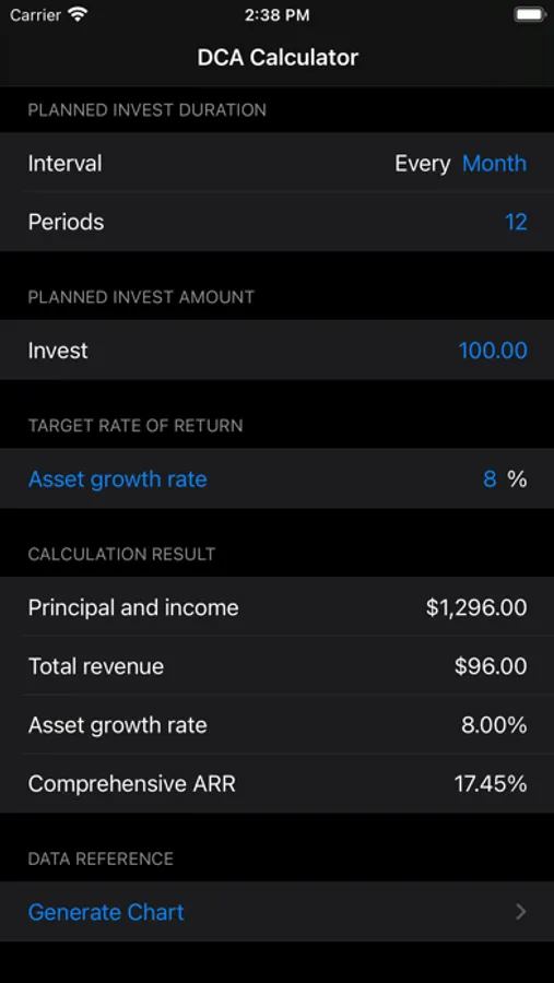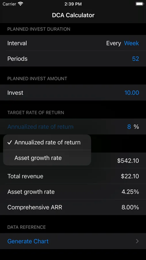 DCA calculator is a simple and clear financial tool app. Unlike many complex and non-intuative all-in-one tools, this app only does one thing: Calculate dollar-cost averaging income.