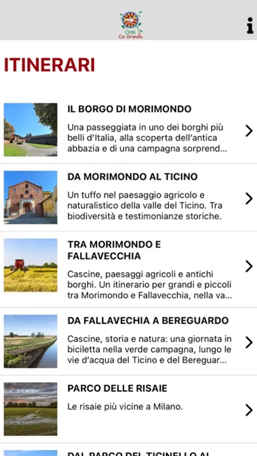 A sud di Milano, tra il Ticino e l'Adda, un territorio da scoprire, dove vivere esperienze uniche, immersi in una natura ricca di bellezza e storia.Tra prati e boschi, lungo canali e risorgive, potrai ammirare antiche cascine, cappelle, chiese e abbazie donate nei secoli da tanti benefattori alla “Ca’ Granda”, così veniva affettuosamente chiamato dal 1456 l’attuale Ospedale Maggiore Policlinico. Un’eredità straordinaria oggi valorizzata dalla Fondazione Patrimonio Ca’ Granda che, grazie al progetto Oasi Ca’ Granda, fa rivivere questo grande tesoro di natura e cultura proponendone la scoperta. Scegli la tua esperienza nelle terre dell’Oasi, dalla valle del Ticino a quella dell’Adda: itinerari a piedi e in bicicletta, una spesa di prodotti genuini a km zero, eventi speciali per grandi e piccini, sapori autentici da gustare in cascina.
