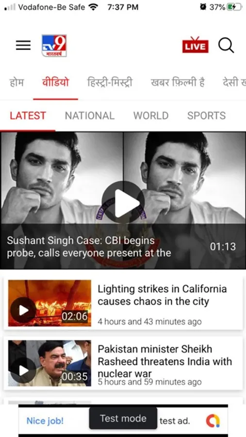 TV1: niche channel in telugu devoted to Entertainment and News.