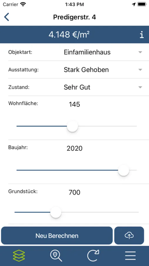 Mit der STmate Smartphone App machen Sie Wertindikationen schnell und einfach unterwegs und Sie haben die wichtigsten Karten immer dabei. Für die detaillierte Bearbeitung und Reports können Wertindikationen direkt in Portfolios nach STmate übertragen werden. Die Wertindikation in der STmate App nutzt Ihr Mobile-Kontingent. Bei Übertragung in ein Portfolio in STmate wird Ihr STmate-Kontingent genutzt.