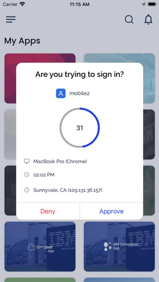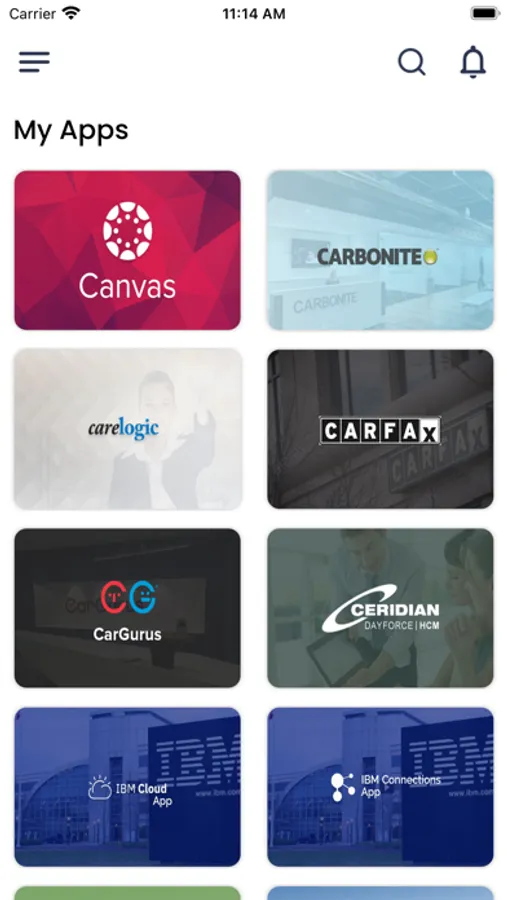 Single Sign-On to Apps: Access organization-wide applications, from a single screen on a mobile device, using a single set of credentials to all authorized applications