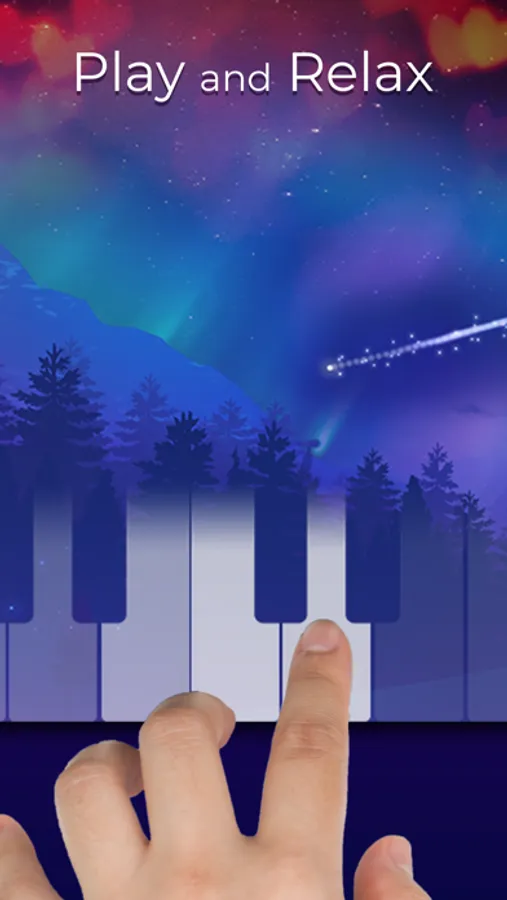 Play enchanting piano melodies against the beautiful background of the Nordic night sky.