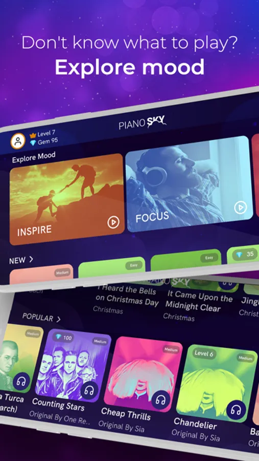 With Piano Sky, you can sit back, relax, and play all the piano songs you love, whether popular songs or classical masterpieces, while enjoy stunning visuals with calming effects.