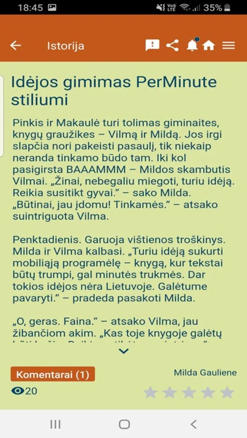- Sukurk istoriją, kurios skaitymui reikėtų skirti iki minutės (iki 1200 simbolių su tarpais), ir spausk „Skelbti“