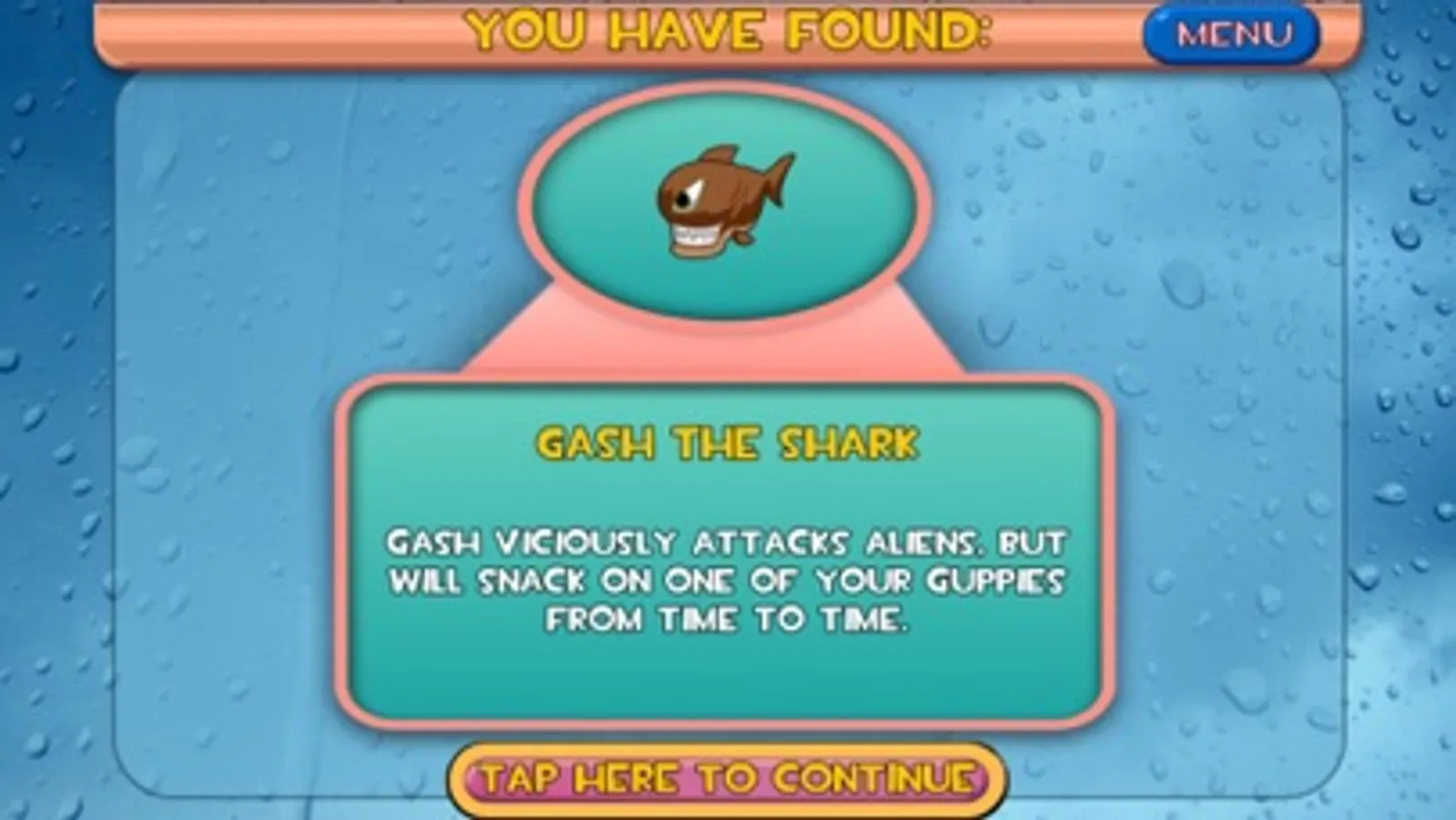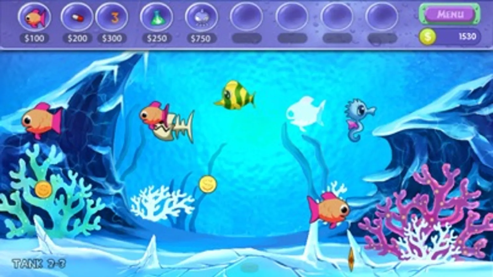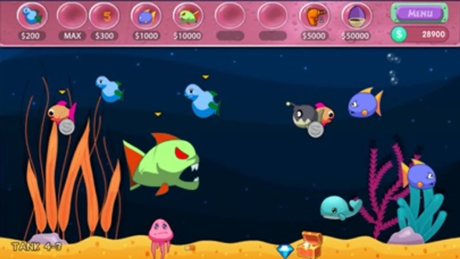 4 modes to play: ADVENTURE TANK , TIME TRIAL, CHALLENGE TANK and VIRTUAL AQUARIUM.