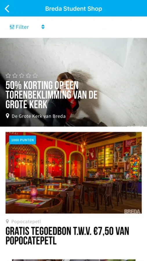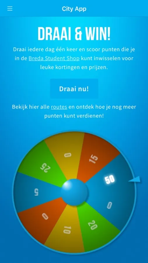Register as a student and earn loyalty points by spinning the wheel of fortune or by finishing routes that help you to discover Breda. You can spend your loyalty points in the Breda Student Shop. Get large discounts or even free products!