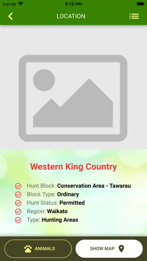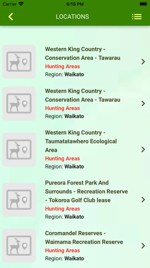 Information about the animals of New Zealand and their habitats. The boundaries of hunting locations on the google maps.