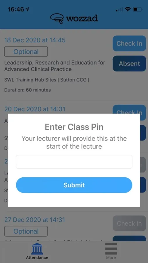 The Wozzad Attendance Monitoring App allows students to use their iPhone to self-register class attendance, but capturing their GPS location confirming with either TouchID or FaceID.