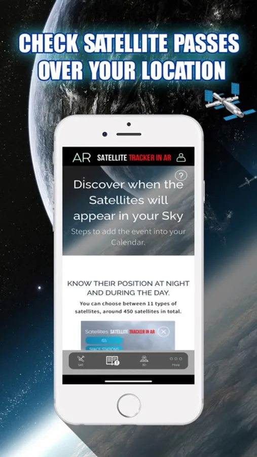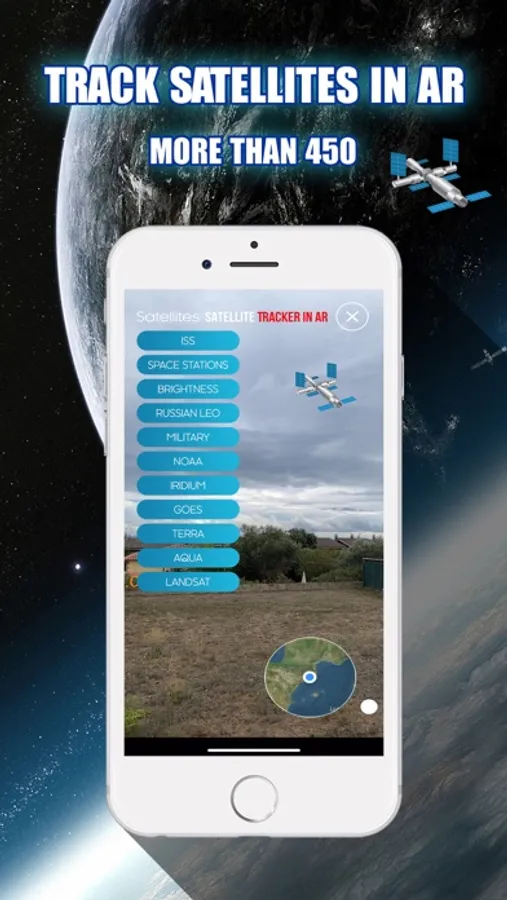 You can watch 11 types of satellites: International space Station (ISS), Other Space Stations, brightness satellites, Russian in LEO orbit, Military, NOAA, Iridium, GOES, TERRA, AQUA and LANDSAT.