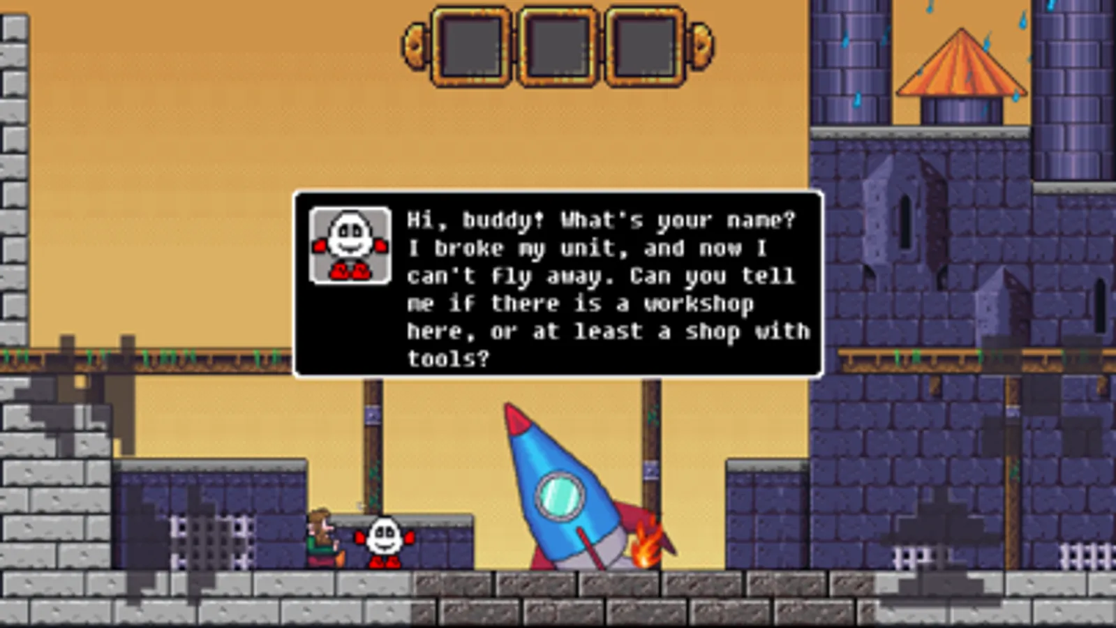 From this moment our journey begins. We need to help Dizzy restore the rocket in a traditional Russian way and refuel it for departure. Some items can be crafted, while one item should already be in the inventory (crafting itself occurs automatically).