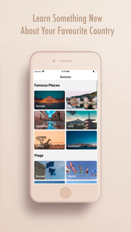 The game is for everyone! You can be a life-long backpacker or a student, who wants to learn capitals or flags, as a quiz has 3 levels of hardness.