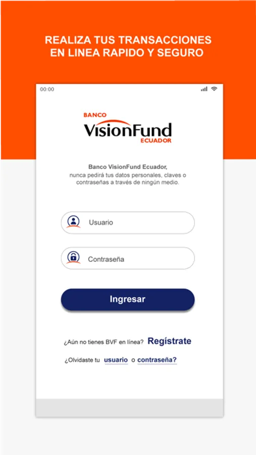 VisionFund en línea, es un aplicativo que le permite acceder a todos los productos y servicios que le ofrece el Banco VisionFund Ecuador desde su Smartphone.