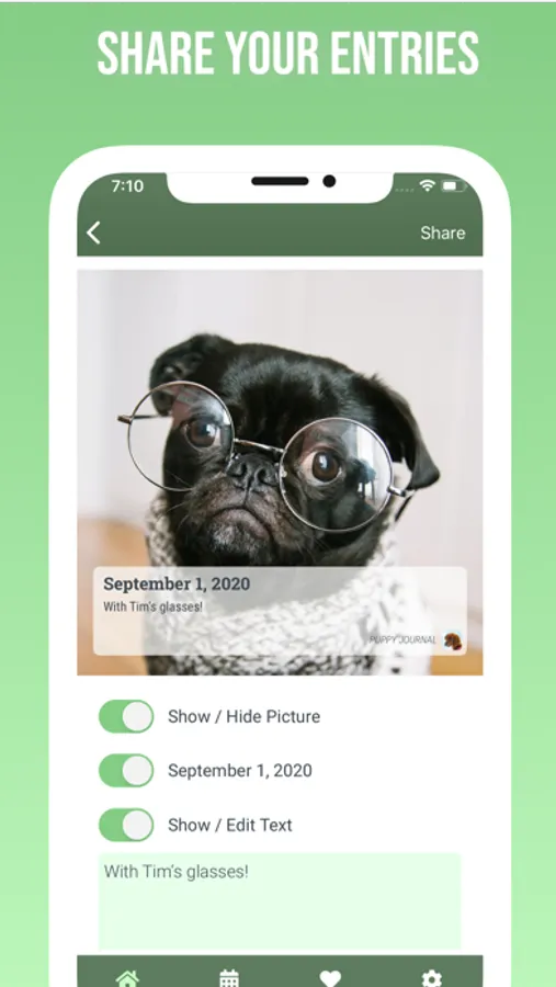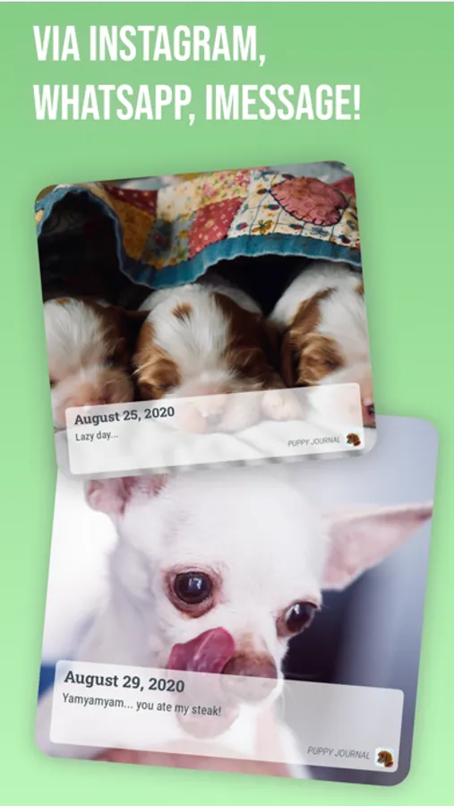 Start today to capture the funny, emotional, awesome moments of your puppy's life. If you have more than one puppy, you can create a profile for each one and switch quickly and easily between the different profiles.
