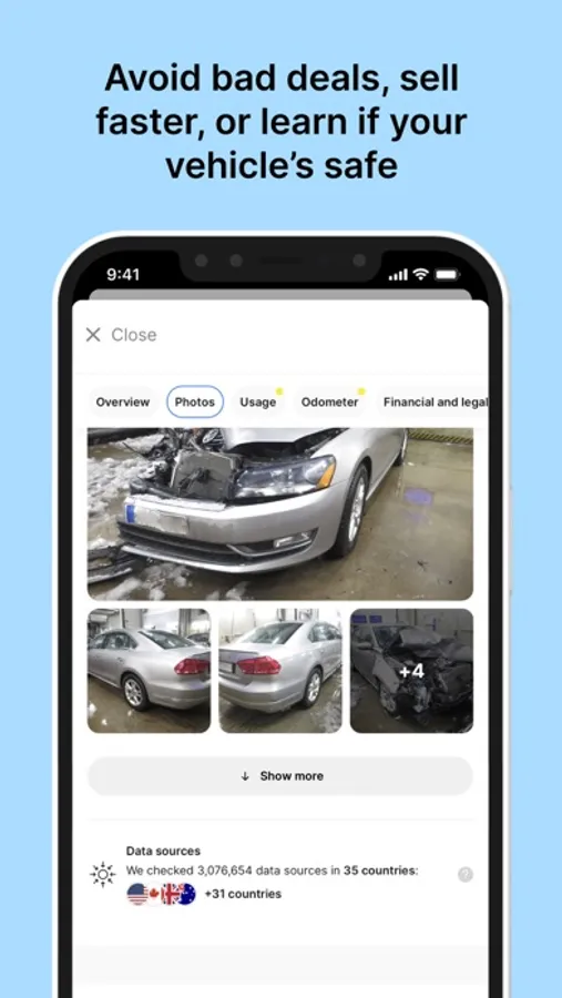 Provides only reliable information that cannot be faked - we process and verify all the data, blockchain confirms it’s reliability. This means that car’s history cannot be changed, faked, or manipulated.