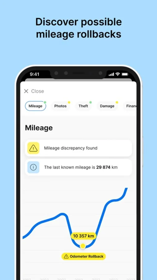 Analyzing the vehicle’s history and condition on different dates helps to spot various frauds or discrepancies that the dishonest seller might want to hide from you: odometer rollbacks, concealed damage, thefts, bugs, and so on.