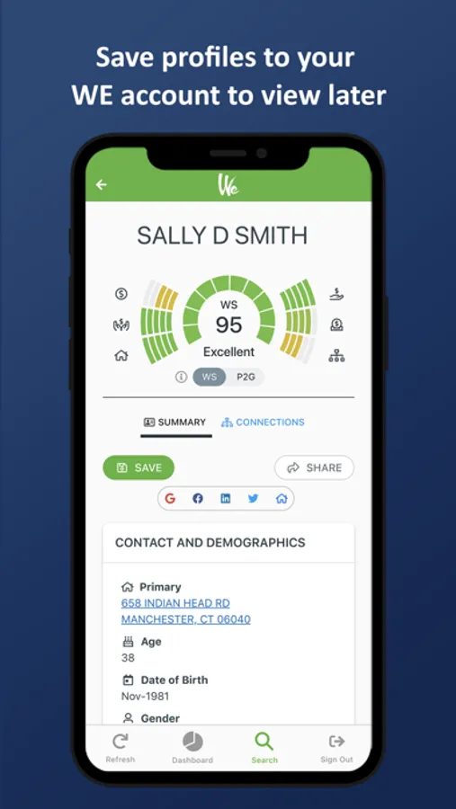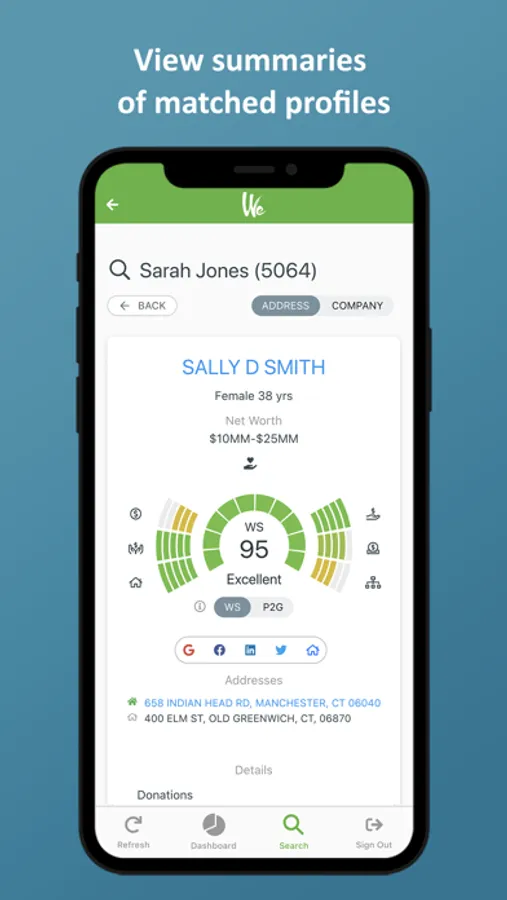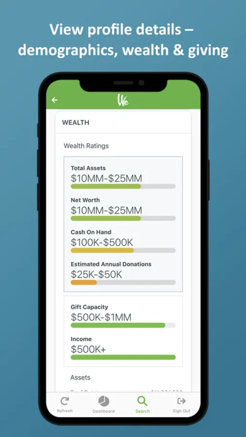 WealthEngine’s mobile app helps your organization find your best prospects and client or donor expansion opportunities. Our 250 million scored profiles of the U.S. population include hard-to-find information that helps you know your customer or donor better. Use the app in conjunction with your WealthEngine account to get insights on the go.