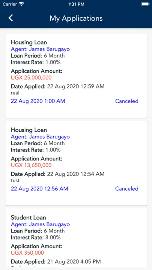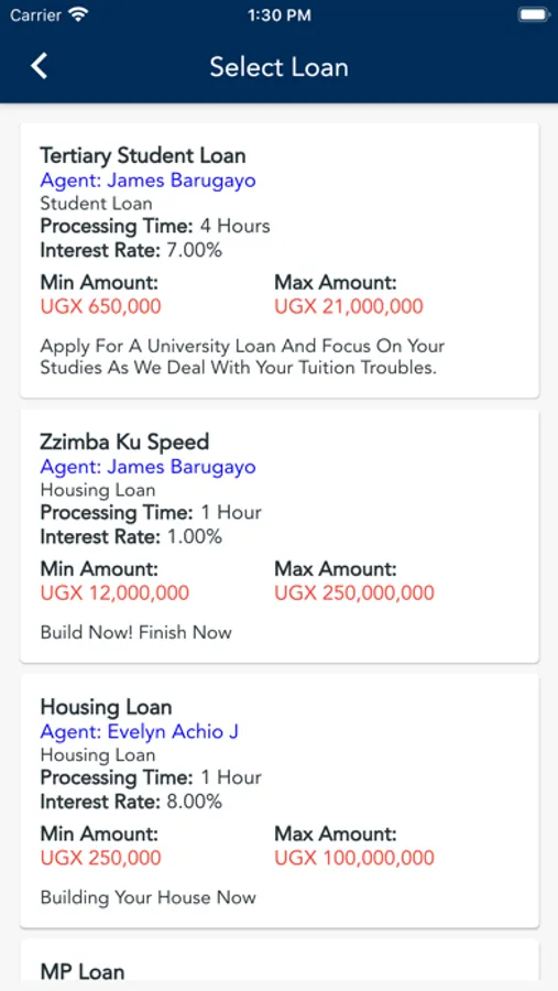 The app provides an option of selecting your favourite loan agent based on their region of the country and loans in their departments.