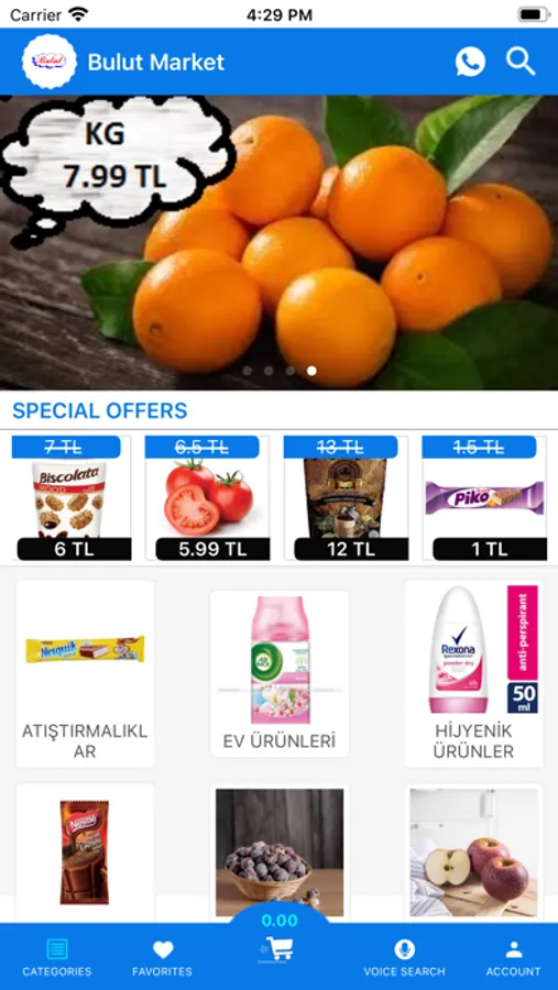 Geniş ürün yelpazesi ile Bulut Market artık cebinize. Bir kaç tıklama ile kolayca sipariş verin, kapıda güvenle ödeme yapın. Hızlı ve kaliteli servisimiz ile her an yanınızdayız.