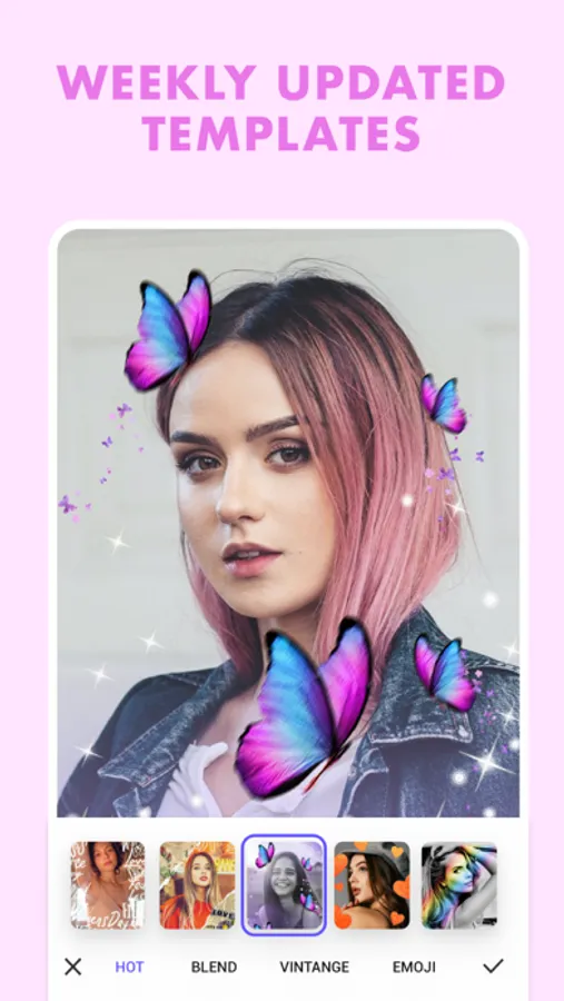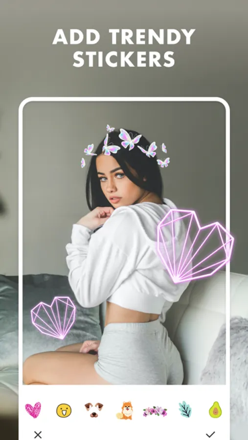 Go beyond simple editing and create fantastic new creations with easy to use templates and editing features to take your pics beyond the mundane. Fulfill your fantasies with awesome stickers, templates, background options, live face filters and more. Get inspired.