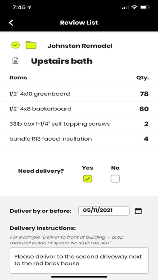 Need material for your construction project? Quickly and easily submit construction material lists for any project to suppliers near you! Get competitive pricing bids in return and purchase directly from suppliers with no charge account needed. GroundUp is the fast and reliable way to save time and money while minimizing the headaches of getting the materials you need!
