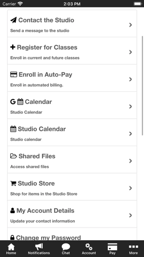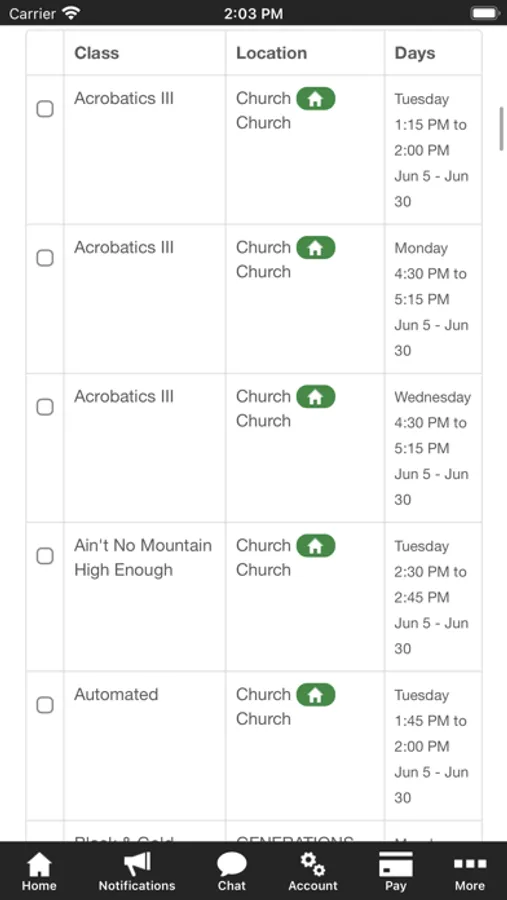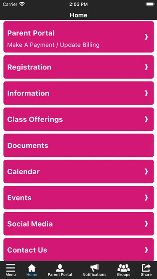 The Generations App allows you to register for classes. The Generations calendar, social media links, and contact information are also easily accessible from the app.