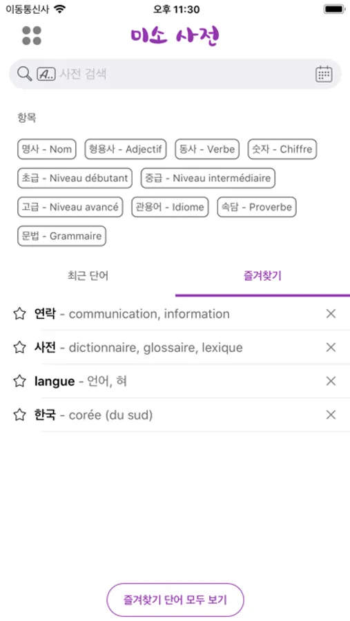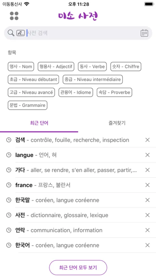 Korean-French-Korean dictionary app containing around 50 thousand words of beginner, intermediate, advanced levels.