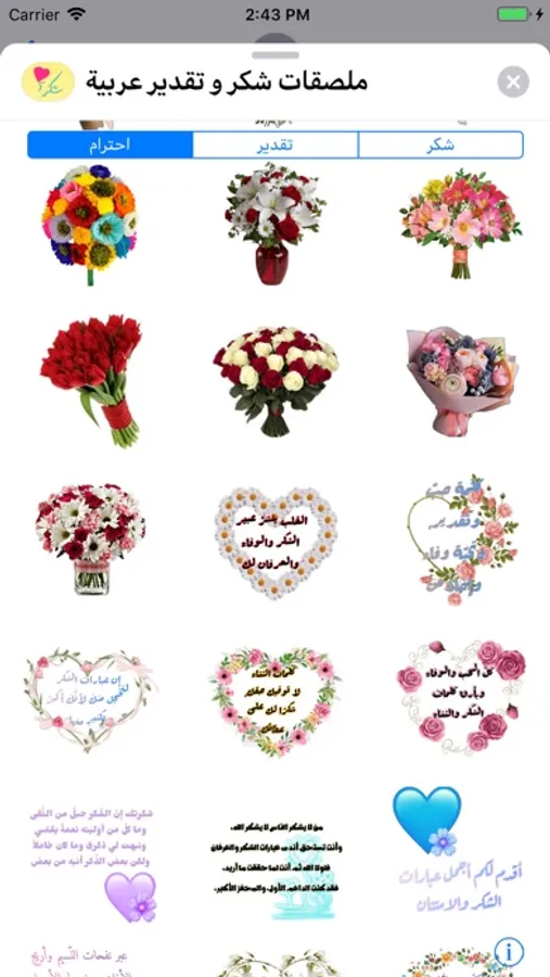 عبارات الشكر والتقدير من الأمور الضرورية التي نقدمها لكل من لهم فضل علينا، حتى تكون هذه العبارات معبرة عن جميع مشاعرنا الجميلة تجاههم، لذلك نعرض أهم وأجمل عبارات الشكر في هذا التطبيق جمعناها لكم في حزم ملصقات رائعة حتى تستعملوها وترسلوها لجميع من لهم فضل وتقدير في حياتكم.