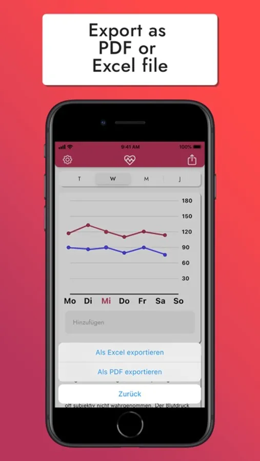 With the My Blood Pressure Manager App you always have your blood pressure values with you in digital form. All your values are saved locally on your mobile phone so ONLY you can get your data. You can export your values as a Excel file at any time and share it with your doctor. In order not to forget to document your values on any day, you can be reminded up to three times a day via push message.