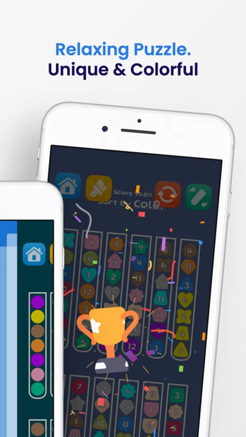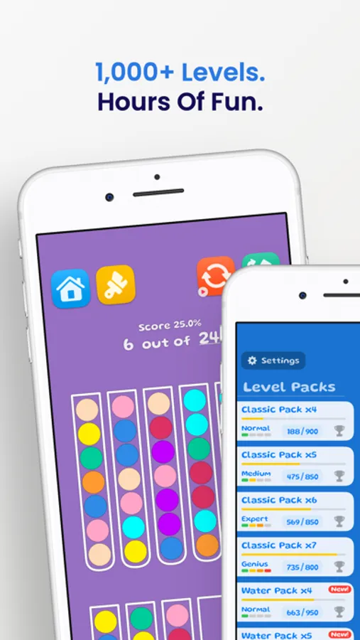 Pass time with this simple logic game. Tap the tubes to select the top-most ball. Stack matching balls until every tube has matching colored balls. Includes various modes!