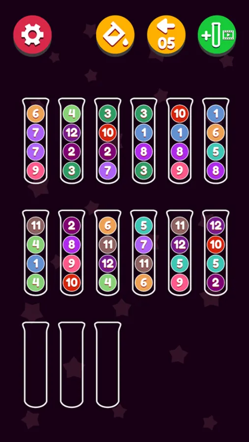 - Every row of tubes you complete, you get an extra empty tube