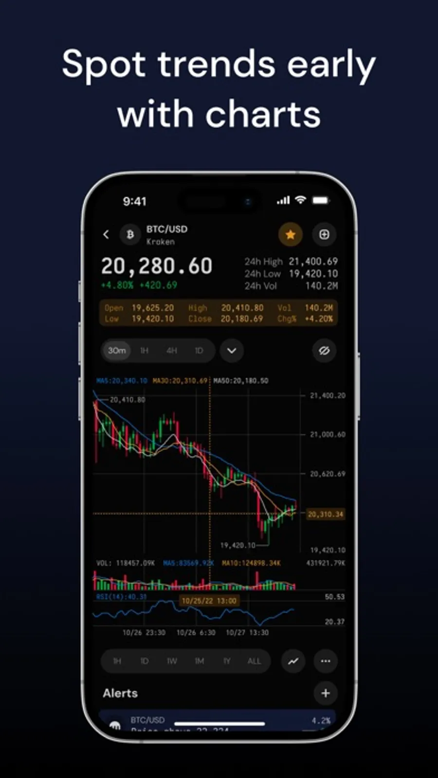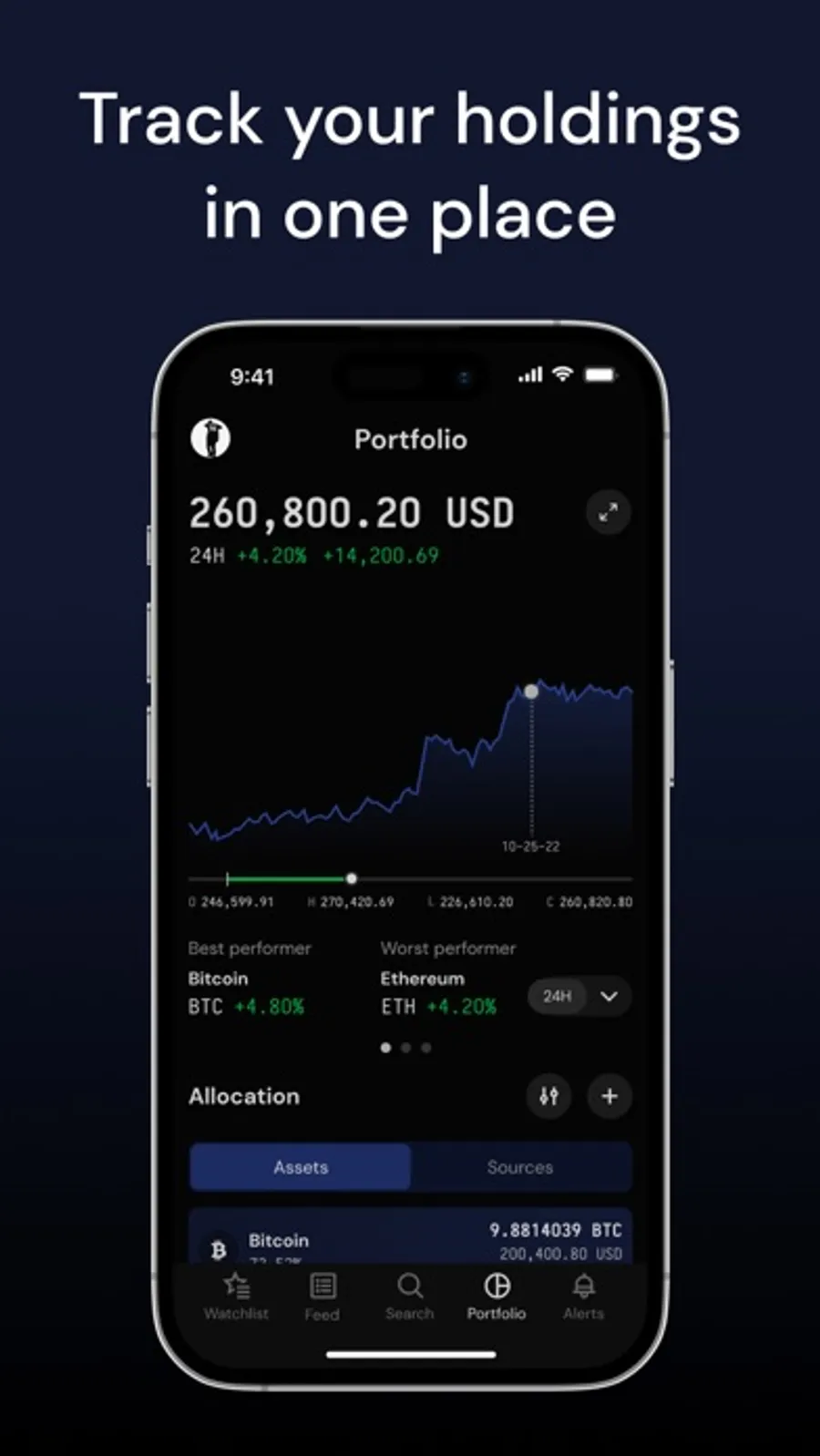 Sync your portfolio from top exchanges like Kraken, Coinbase, and Binance for real-time tracking of your assets.