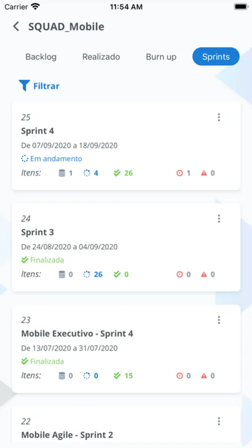 O Mobile Agile permite o gerenciamento e execução de projetos utilizando metodologias ágeis como Scrum e Kanban.